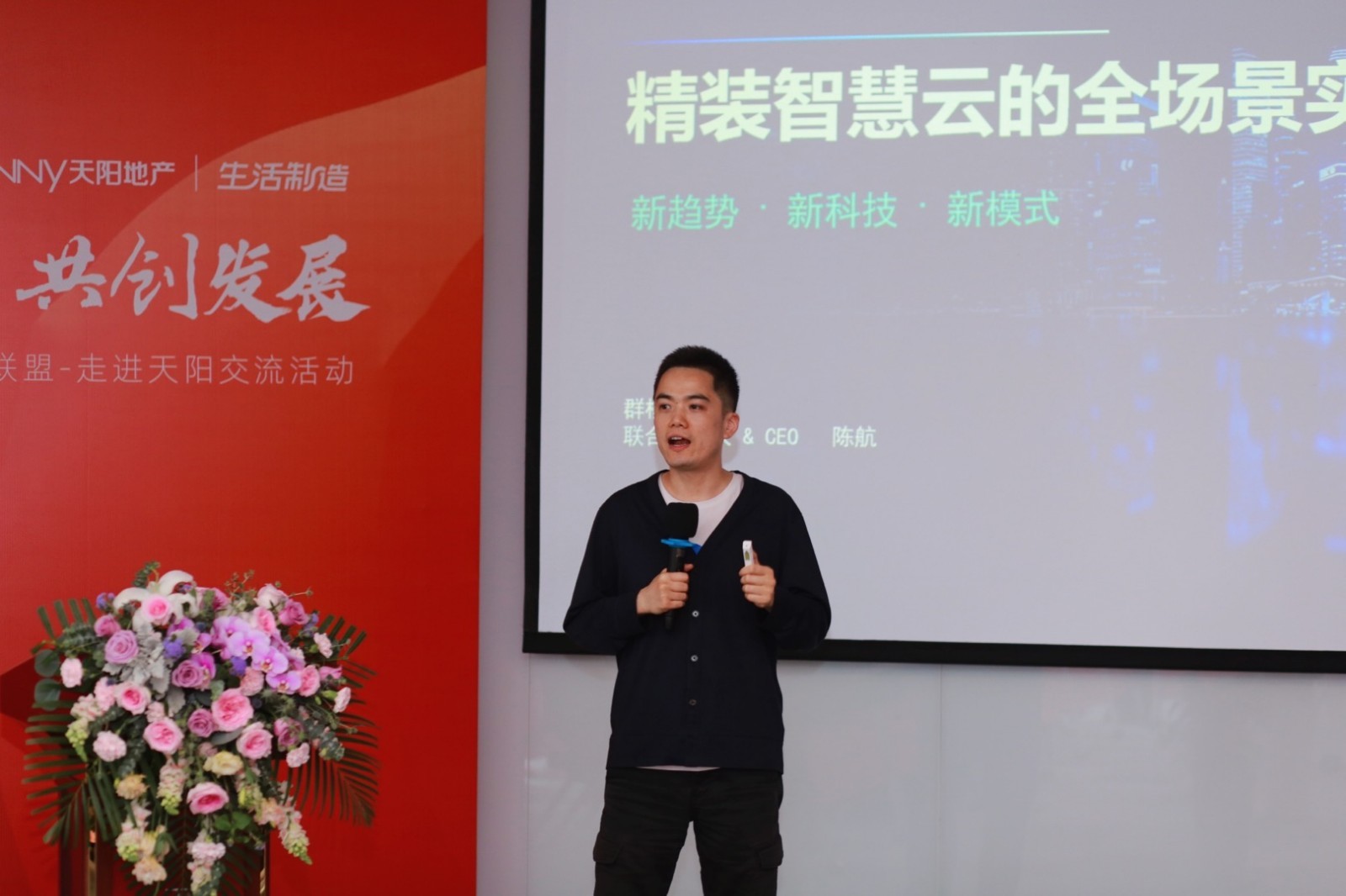 作为本次会议的协办方,群核科技联合创始人兼CEO陈航发表“精装智慧云的全场景实践”主题演讲,站在科技赋能者的视角分享新趋势、新科技、新模式。