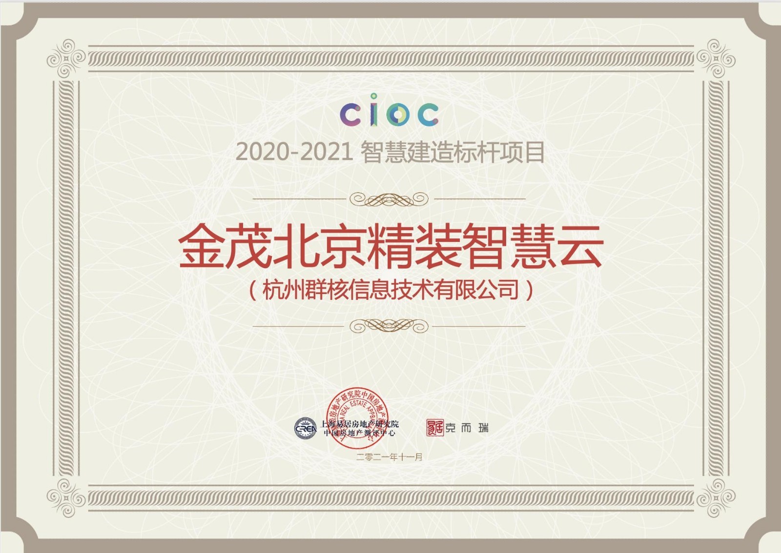 本次奖项榜单中,群核科技联合金茂华北打造的精装智慧云平台成功获得「2020-2021 智慧建造标杆项目」奖项。